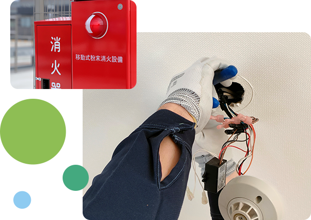 商業施設や公共施設、工場などでは、法律に沿った設備の整備や定期点検が必要です。その大切な役割を担う会社として、国家資格を持つ代表が、利用者様と建物の安全をしっかりお守りいたします。